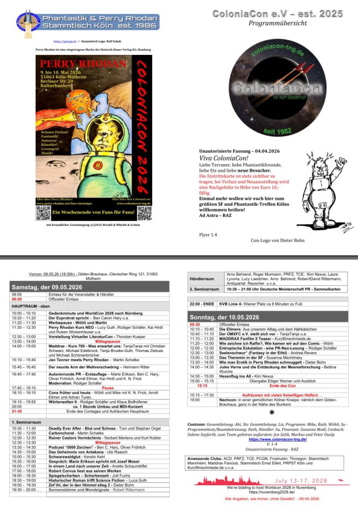 Ich, RAZ, wünsche dem ColoniaCon e.V. für die nächsten Cons: Viele Glück und eine vorausschauende Planung und nicht verzagen… (01/2026)
